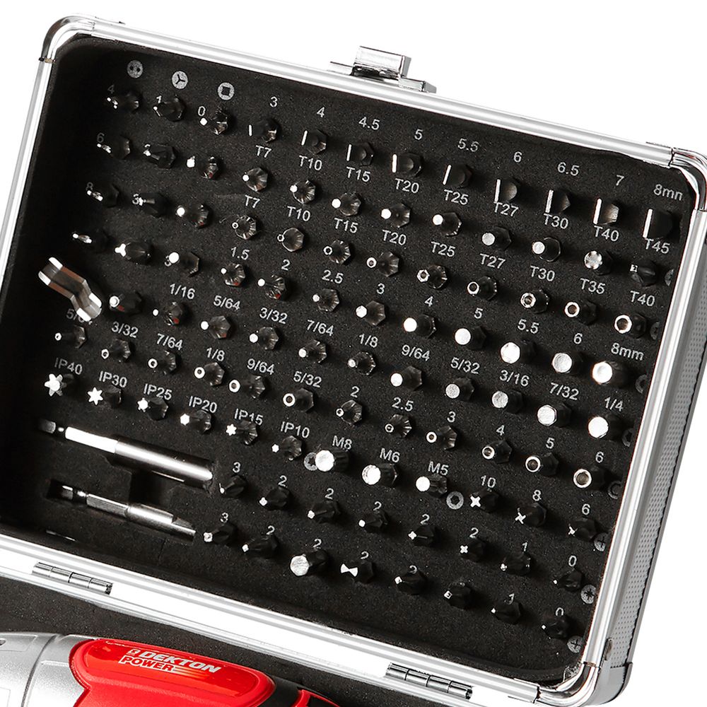 103 pieces with handy aluminium storage case.